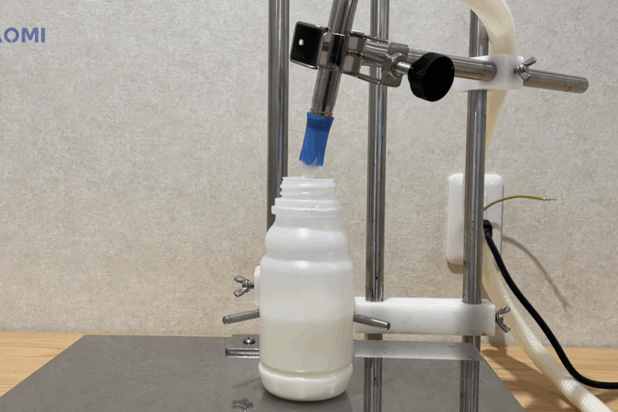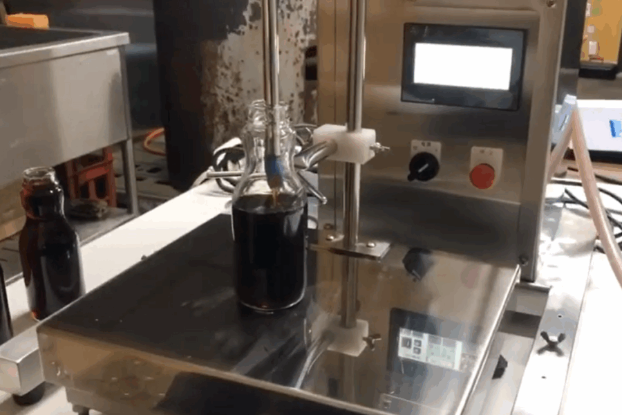 計量ユニット付きの小型液体充填機です。ボトル精度良く充填したい方に最適です。充填開始ボタンを押せば、あらかじめ設定しておいた容量分の充填物が自動でボトル容器に注入されます。